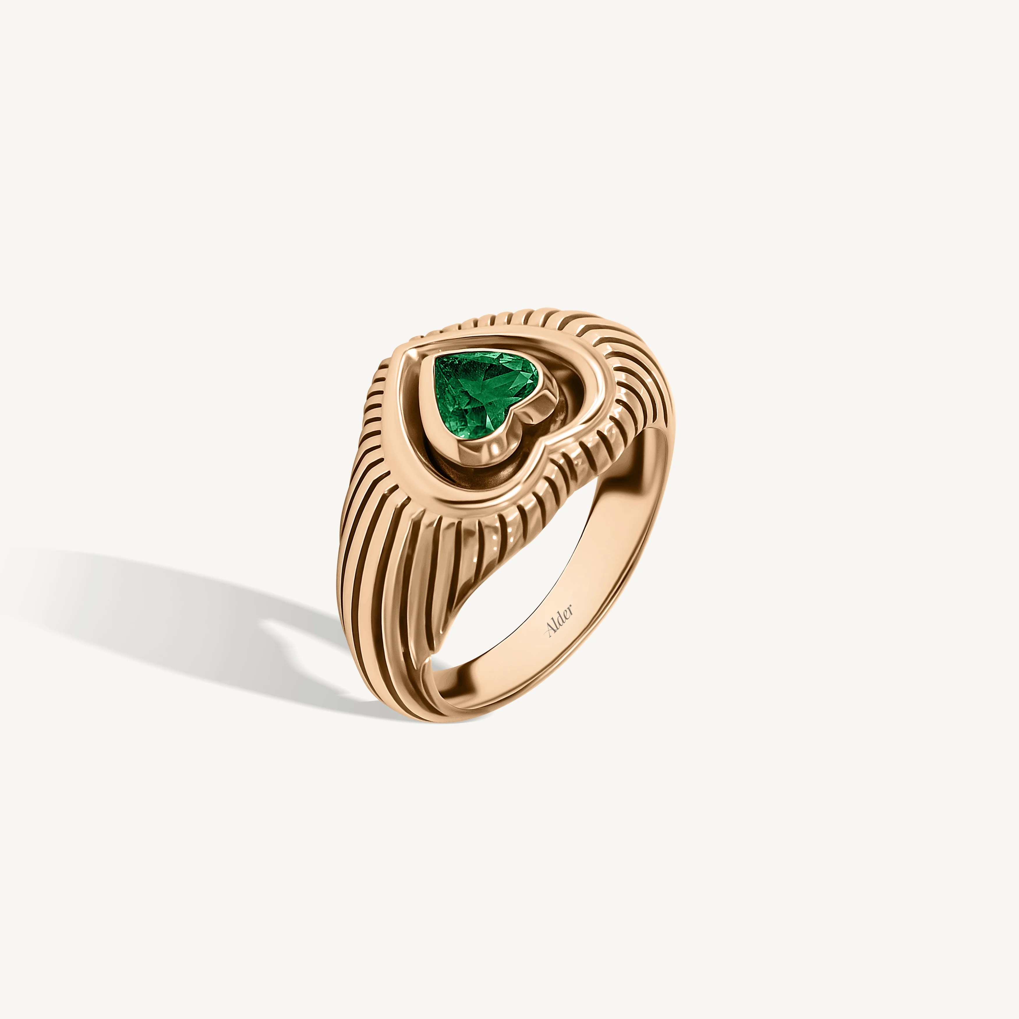 A striking blend of elegance and craftsmanship, the Fluted Heart Emerald Signet Ring showcases a mesmerising natural Zambian emerald at its centre. Encased in 18K solid gold—available in rose, yellow, or white gold—this exquisite piece features a distinctive fluted design, adding a touch of timeless sophistication. Â