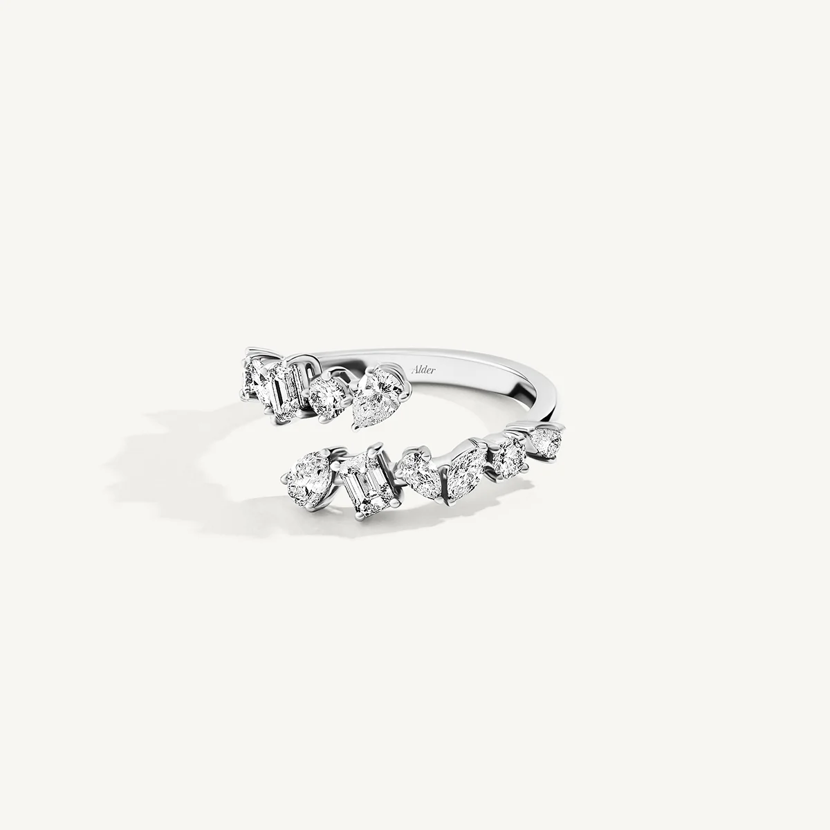 A signature Alder Fine Jewellery design, this piece is exquisitely crafted by our master artisans in 18K solid gold, ensuring both timeless sophistication and lasting brilliance. The seamless integration of different diamond cuts enhances light reflection, creating unparalleled sparkle from every angle. Whether worn alone as a bold statement or stacked for a layered look, this ring is the perfect balance of artistry and luxury.